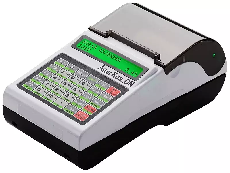 Ekonomiczna przenośna kasa ACLAS Kos_ON LAN + GSM z kartą SIM sieci T-Mobile lub PLUS zapewniającą transmisję danych w okresie pięciu lat to idealne rozwiązanie dla placówek usługowych oraz sprzedaży mobilnej.