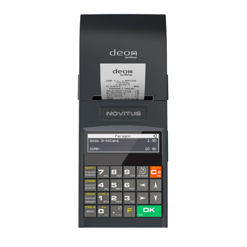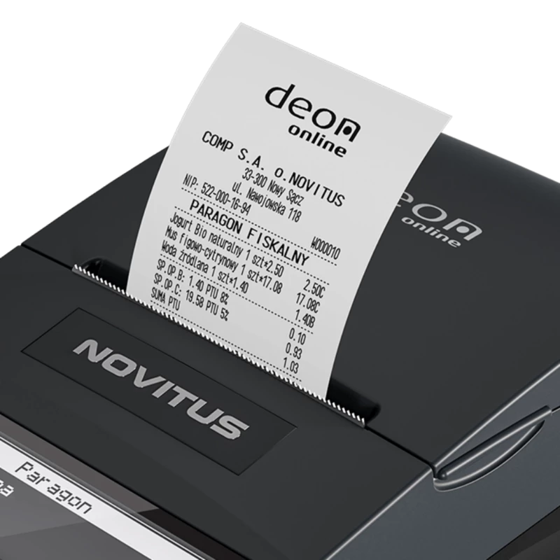 Drukarka fiskalna Deon Online po rehomologacji (Decyzja GUM ZPT 10/2022, program 220) to nasze kolejne urządzenie należące do rodziny ONLINE 2.0. Dzięki nowemu oprogramowaniu, drukarka została wyposażona w szereg innowacyjnych funkcji.
