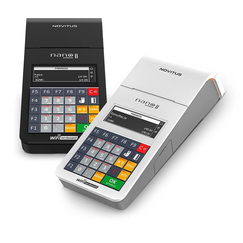 Model zachował najlepsze cechy pierwowzoru, czyli niewielkie rozmiary i ergonomiczny kształt, wodoodporną podświetlaną klawiaturę. Jednak nowy design i dodatkowe klawisze funkcyjne to szybsza i wygodniejsza obsługa oraz bardziej intuicyjna praca. Busy, wypożyczalnie, gabinety lekarskie, parkingi, gabinety kosmetyczne, sklepy - kasa NANO II zawsze dostosuje się do prowadzonego biznesu. Kasa Nano II Online posiada w standardzie obsługę WiFi - po wyjęciu z pudełka od razu może łączyć się z dowolną siecią, w której zasięgu się znajduje.